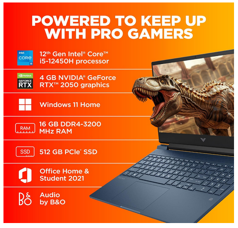HP Victus Gaming Laptop, 12th Gen Intel Core i5-12450H,4GB RTX 2050 GPU,15.6-inch(39.6 cm),FHD,IPS,144Hz,16GB DDR4,512GB SSD,Backlit KB,MSO,B&O,9ms Response time(Blue, 2.29 kg),fa1373TX/fa1227TX